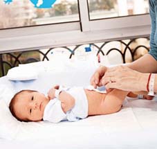 Когда малыш с утра проснется, необходимо будет совершить несколько простых и не сложных процедур. Во-первых, переодеть ребенка, то есть снять с него подгузник и подмыть, если кожа сухая, то нанести на складочки и паховую зону немножко масла. Обычно это делается так: масло наносим на ватный диск и протираем им малыша. Если же кожа ребенка под подгузником раздраженная, то есть появился так называемый пеленочный дерматит или опрелость, то на пораженные места наносим специальный крем или мазь. Если все в порядке, можно нанести немного жидкого талька на попку и пах. Не торопитесь тут же одевать малыша, пусть кожа ребенка немного «подышит», это так же является самой первой процедурой закаливания в жизни крохи.