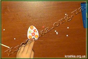 Наносим клей на отметки для аппликации и оформляем наши пасхальные яйца. Данное занятие очень хорошо развивает мелкую моторику, поэтому идеально подходит для деток младшего возраста.