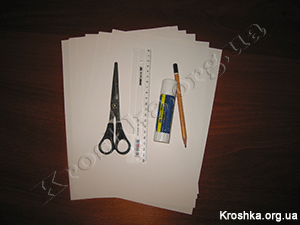 1. Белая или цветная двухсторонняя бумага - 6 листов для большой снежинки или 3 листа для маленькой снежинки