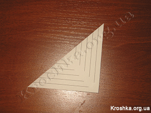 Распечатав или расчертив вручную, вырезаем 6 квадратов нашей будущей объемной снежинки и каждый складываем по диагонали, чтобы белая (пустая) полоса была по центру.
