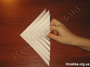 И опять переворачиваем заготовку нашей снежинки и склеиваем между собой последующие полосы будущей снежинки.