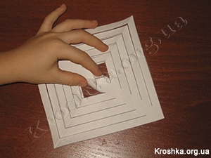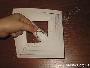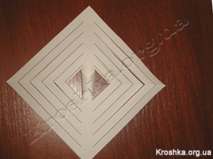 Далее вырезаем все наши 6 квадратов по линиям, не дорезая до конца, а лишь до белой полосы.